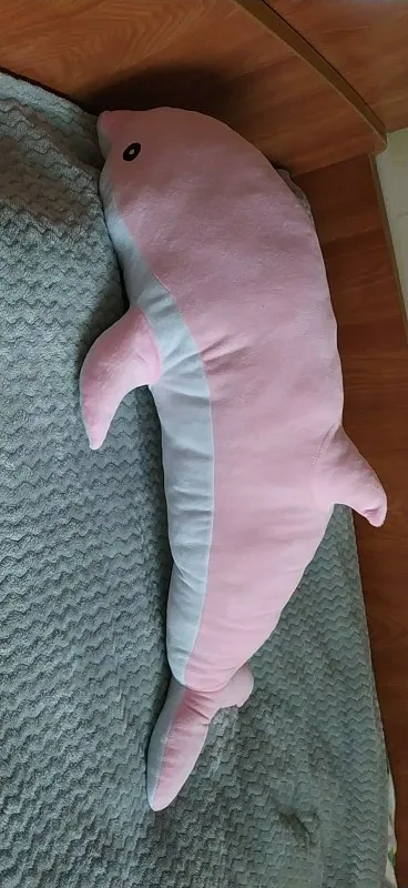 Всё как на фото, набивки вполне достаточно! красивый. Ребёнок хотел именно этого дельфина, поэтому заказала, но вообще цена слишком высокая, за эту сумму я могла купить игрушку в Казахстане, не ожидая. За это оценку снижаю. Доставка в РК месяц и десять дней