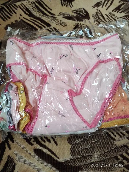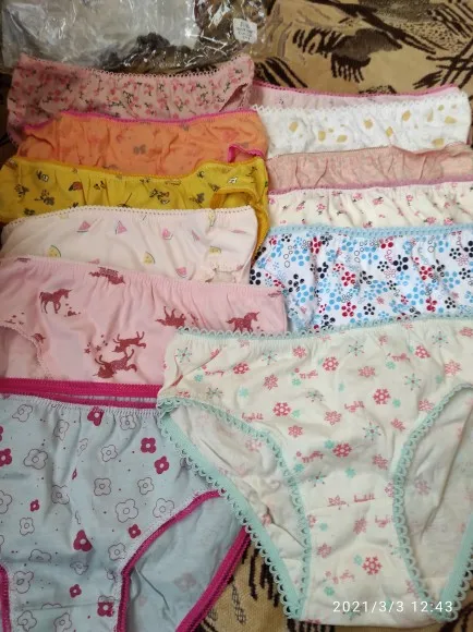 Яркие и качественные трусики. Швы аккуратные, нитки не торчат. В упаковке 12 разных пар. Доставка оперативная