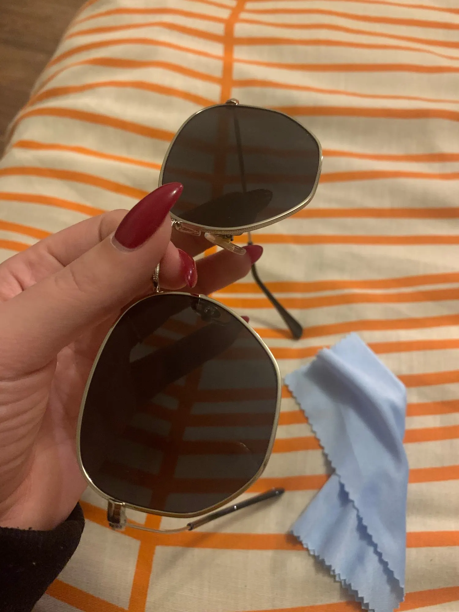 Очки очень понравились. Пришли в целости, плюс положили тряпочку для стёкол))) Единственный минус, немного хлипкие. А так форма крутая. Мне нравится