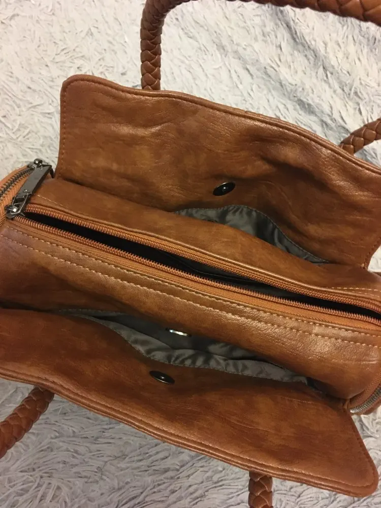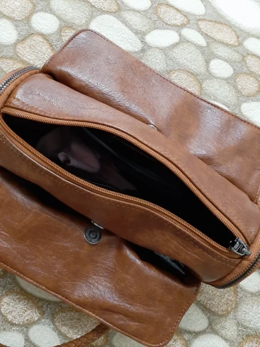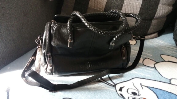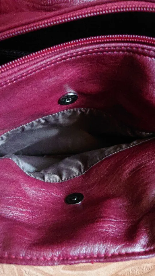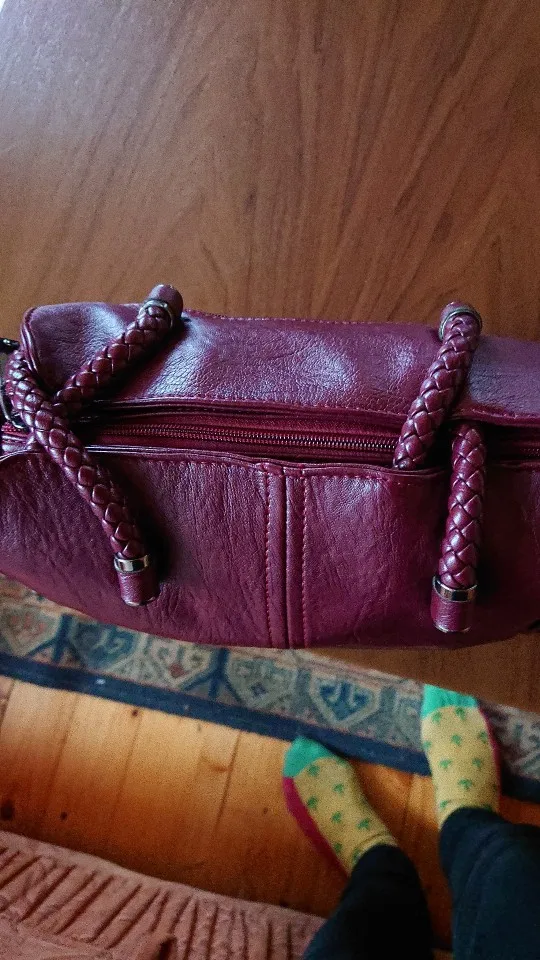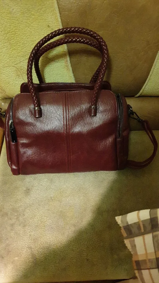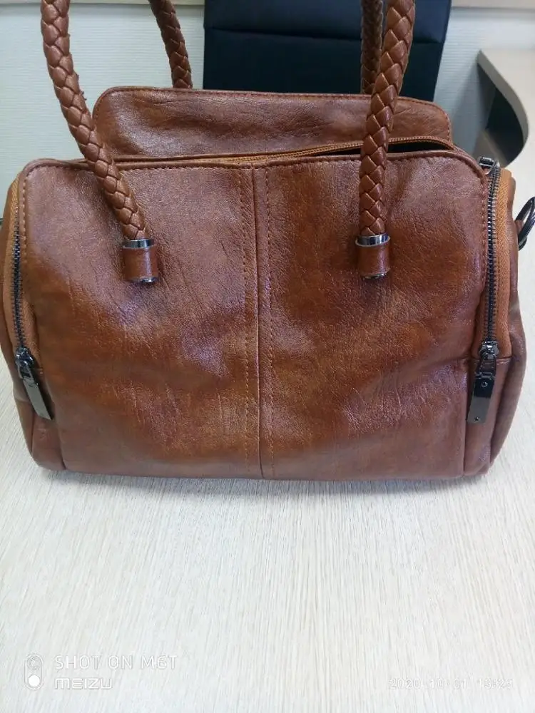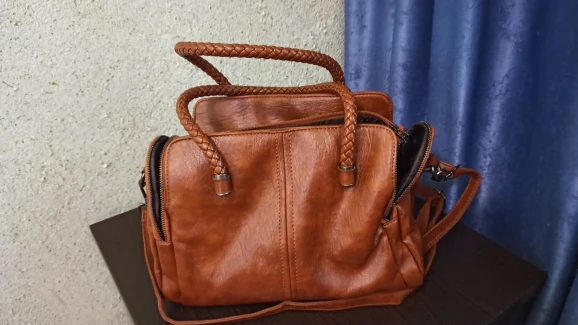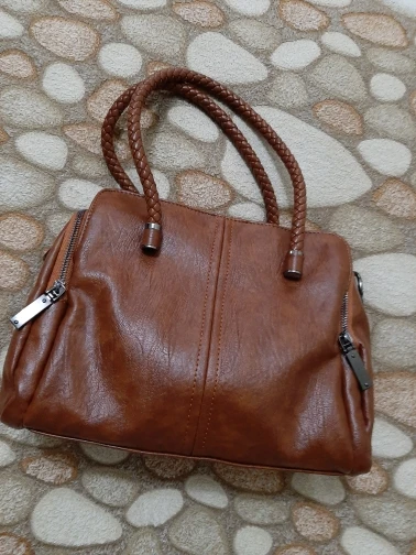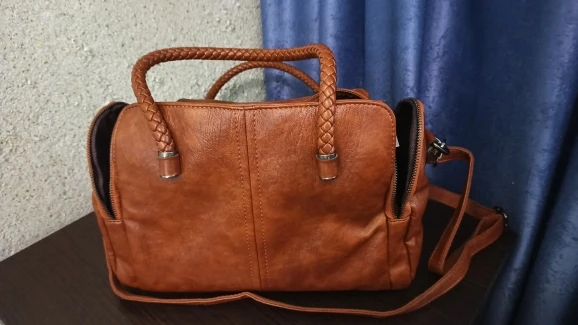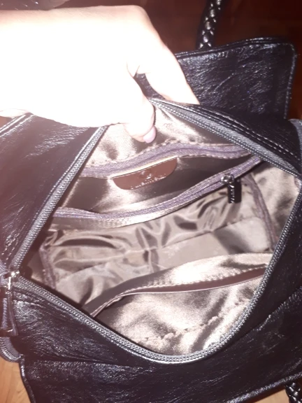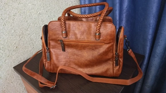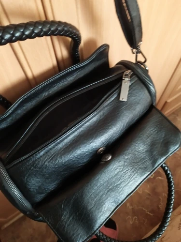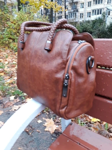 Получила сумочки, одну коричневую, другую чёрную, в целом качеством довольна, кожзам мягкий, не пахнет, товар пришёл довольно быстро, коричневая вообще классная, а вот чёрной сумкой не довольна- вид испортили синие молнии на боковых карманах (на фото продавца они чёрные), сразу сумка смотрится как-то дёшево, словом я бы такую в магазине или на рынке не купила. Сама сумочка средних размеров, вместительная, форма понравилась, если бы не синие молнии. Немного огорчена.