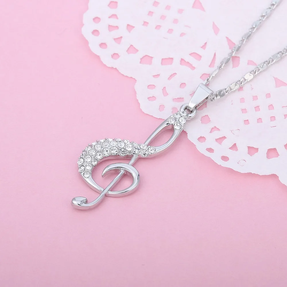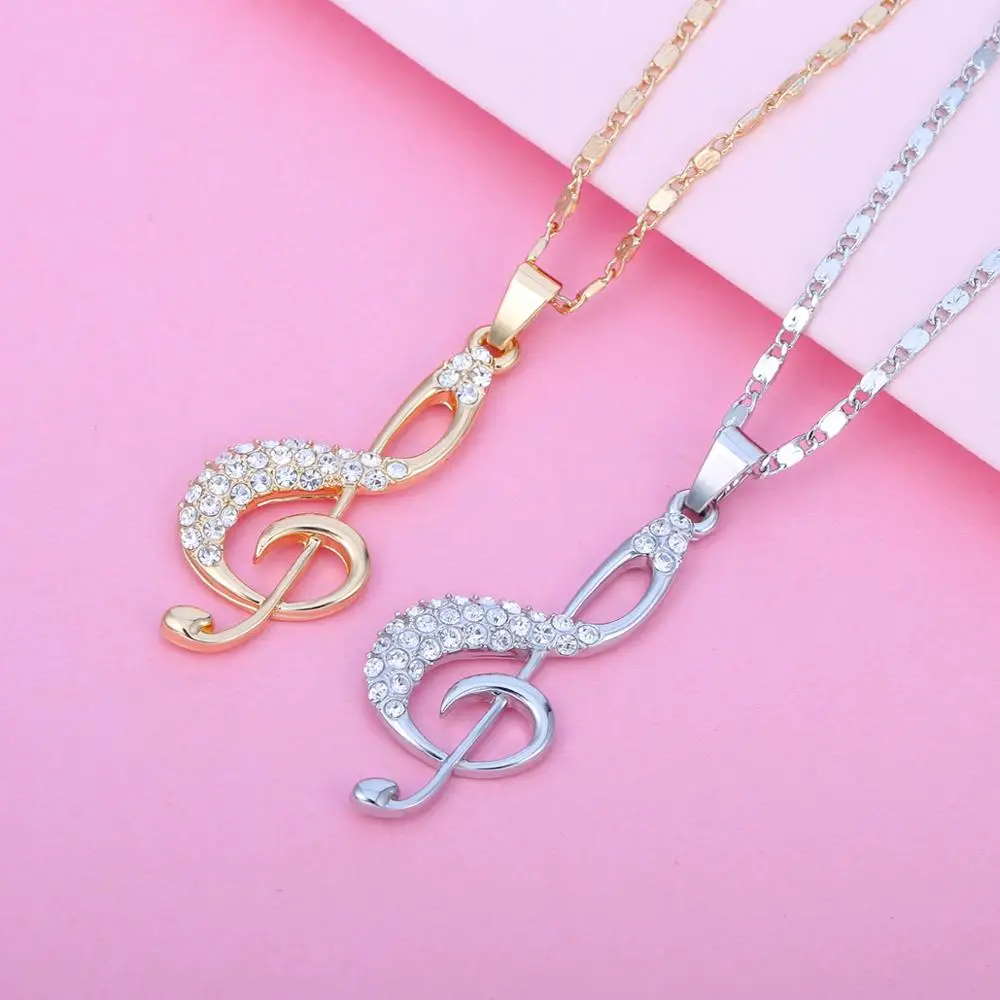 Подвеска-музыкальные ноты, ожерелье с золотыми кристаллами, классический стиль, музыкальные ювелирные изделия, колье для женщин, свадебные подарки, 2019 Цвет: Золотой; Серебряный Материал: высококачественный сплав + кристалл Длина цепочки: 40 + 5 см Кулон Размеры: 3,8 см Подарок для: подруги/жены/мамы