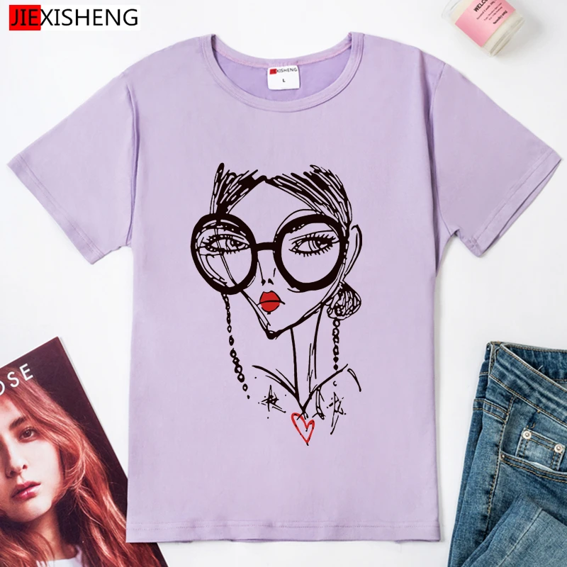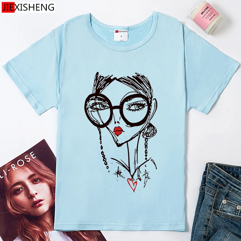 Футболка женская с принтом в виде очков, с коротким рукавом и кругл...