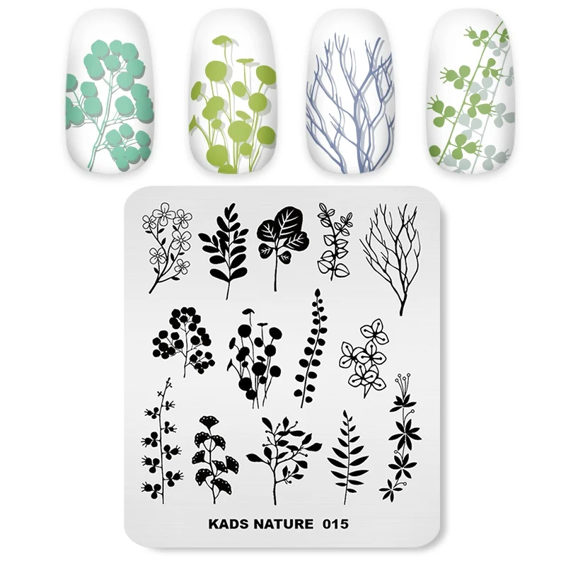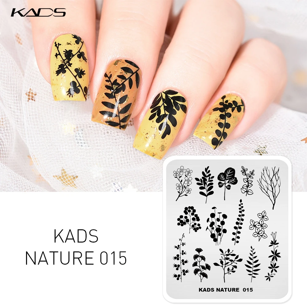 Пластина для стемпинга ногтей KADS, трафареты для ногтей, шаблоны с изображением растений из натуральных листьев, шаблон для дизайна ногтей, трафаретные гвозди, новинка 2020