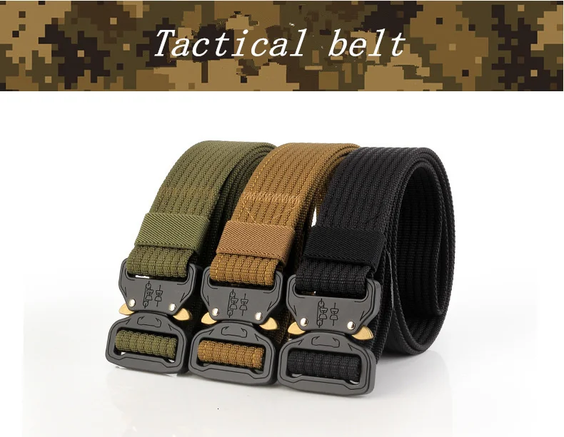 Ремень мужской нейлоновый с металлической пряжкой, военное снаряжен...