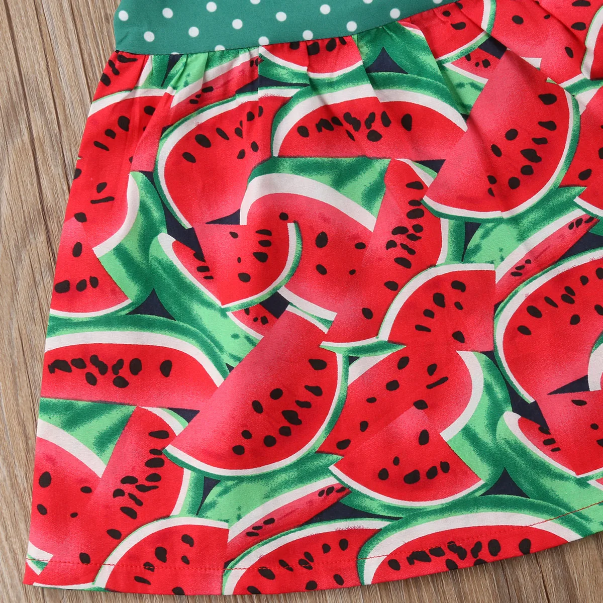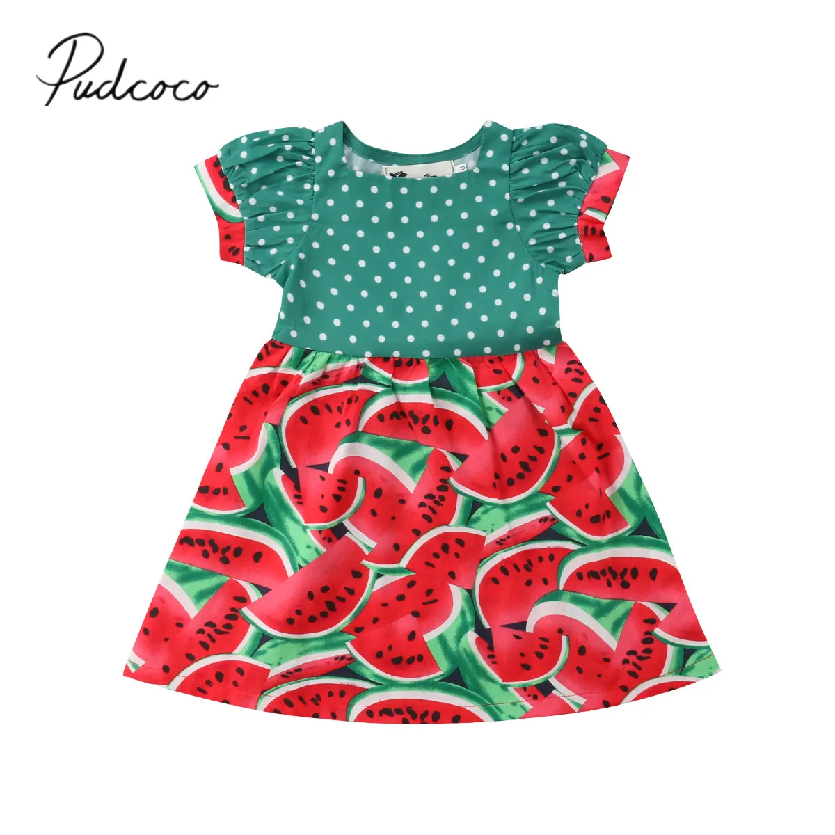 Новинка 2018, летнее милое платье для маленьких девочек, лоскутное платье-трапеция до колена с рукавами-лепестками и арбузом в горошек, женская одежда