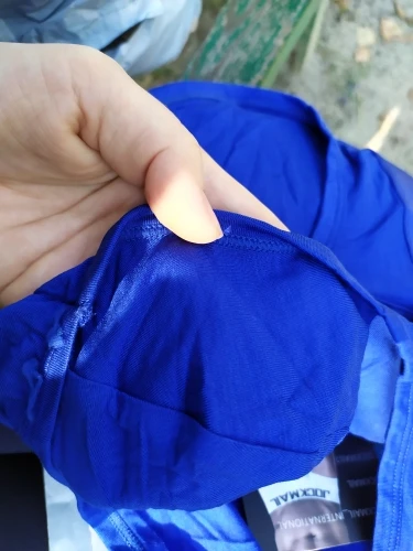 Доставили быстро. Материал тонкий, приятный к телу. Но с цветом не угадал Ядрёный синий, как на картинке. Думал будет потусклее