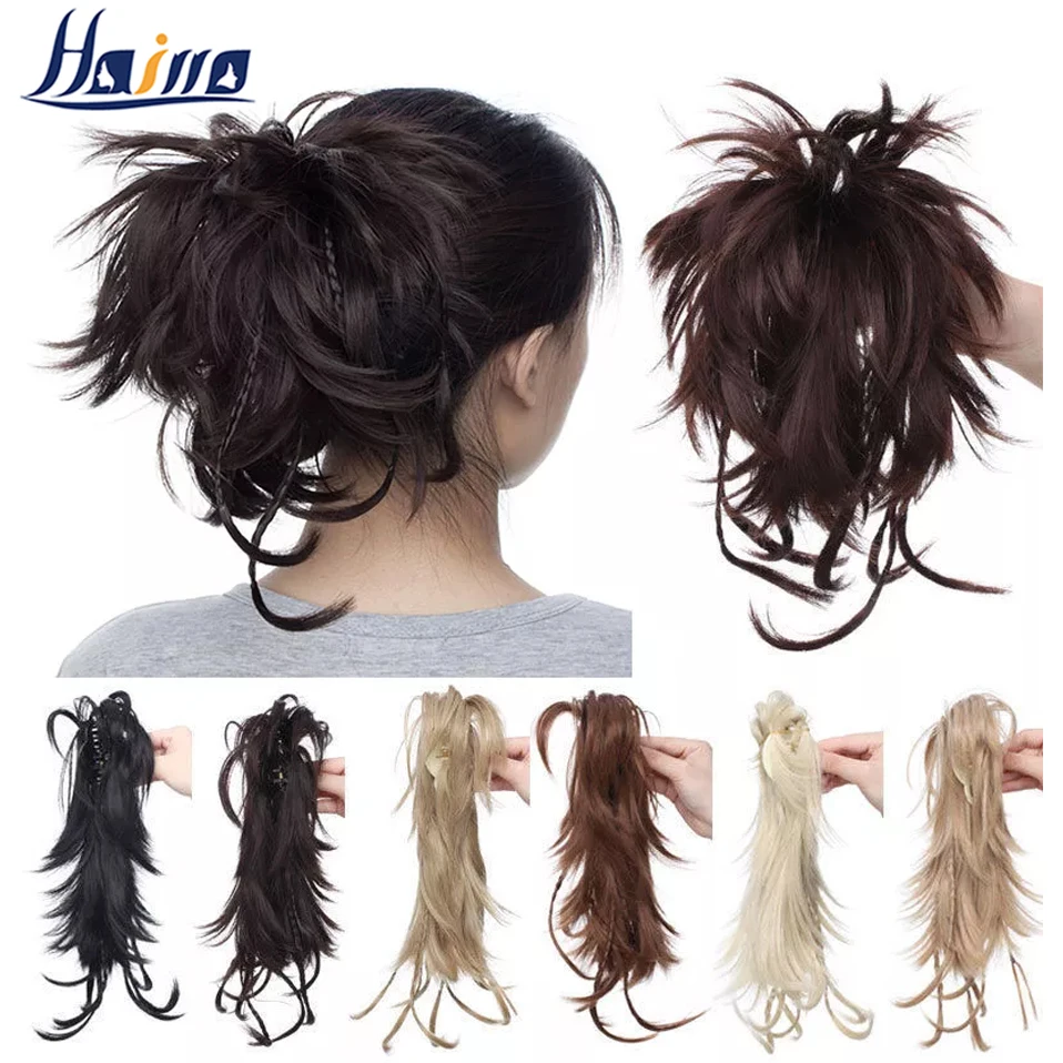 Синтетические волосы HAIRRO 12 дюймов сделай сам, черные и коричневые косички, заколка для конского хвоста, наращивание волос, шиньоны для конского хвоста