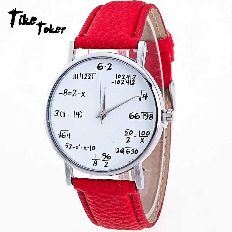 Женские наручные часы TIke Toker, аналоговые кварцевые часы с математической формулой и кожаным ремешком, подарок для детей