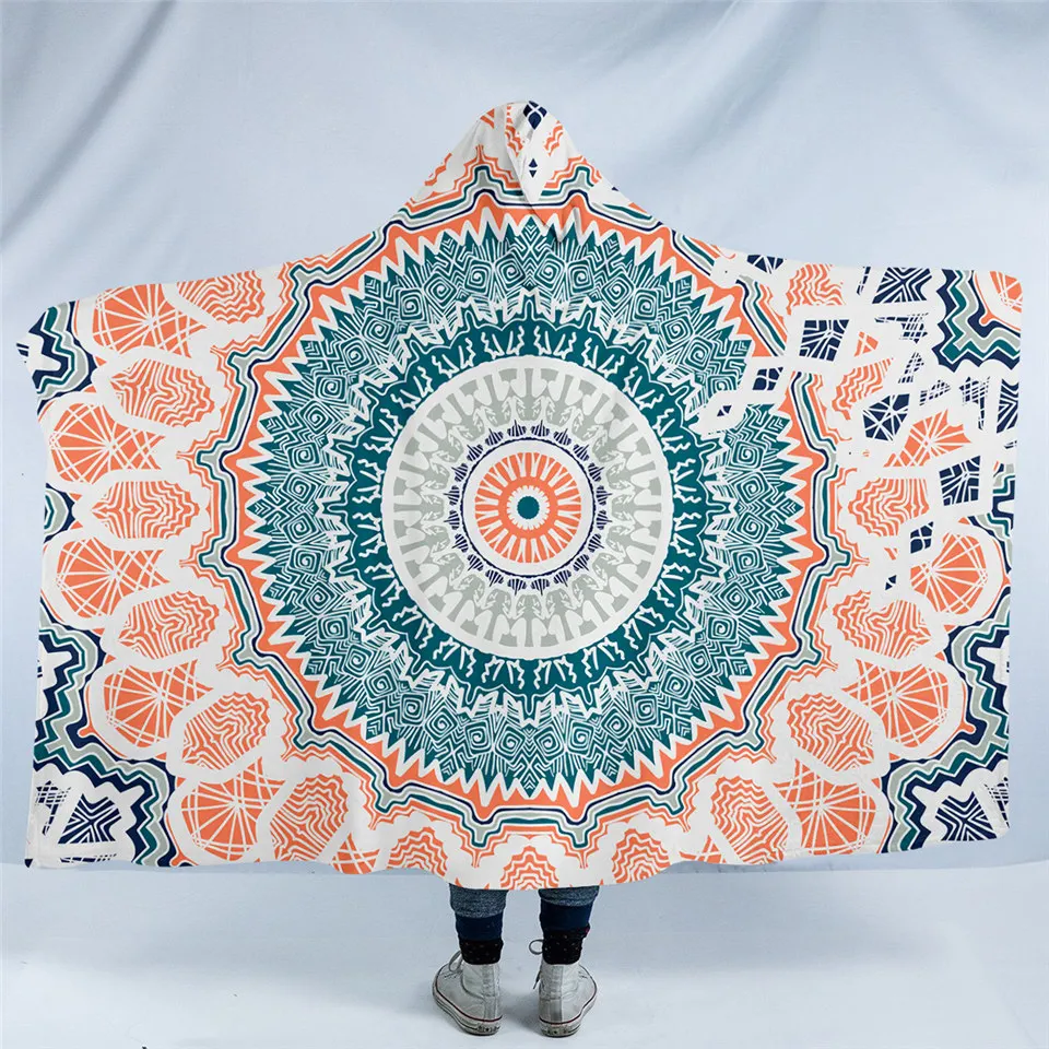 BeddingOutlet цветочное одеяло с капюшоном с мандалой синее оранжевое фиолетовое шерпа флисовое удобное покрывало для взрослых и детей постельное белье в богемном стиле