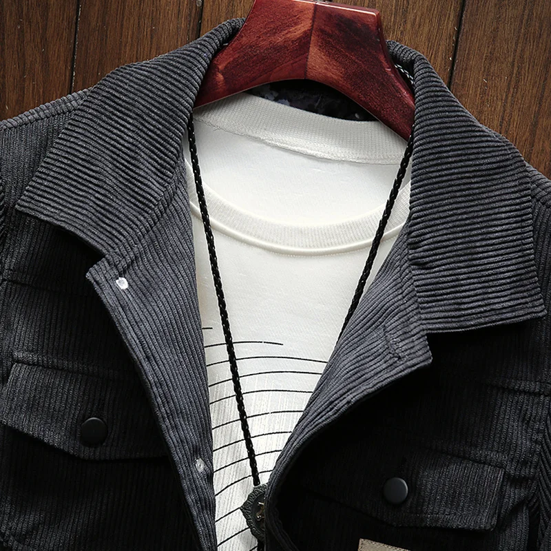 Мужская Вельветовая куртка, осенняя Повседневная приталенная куртка из чистого хлопка, верхняя одежда