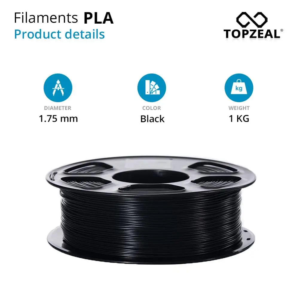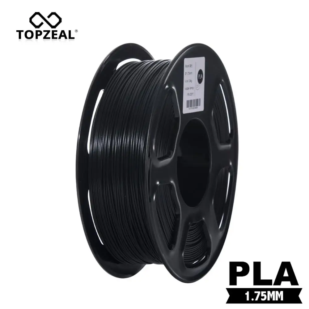 TOPZEAL PLA нить для 3D-принтера, точность измерения +/-0,02 мм, катушка 1 кг, 1,75 мм, черный цвет