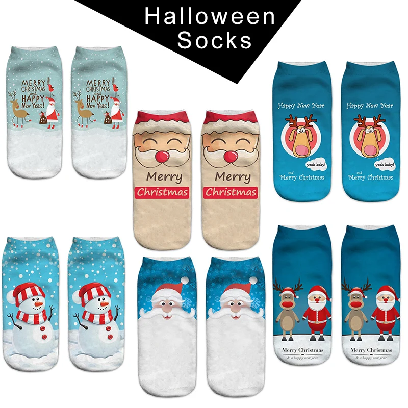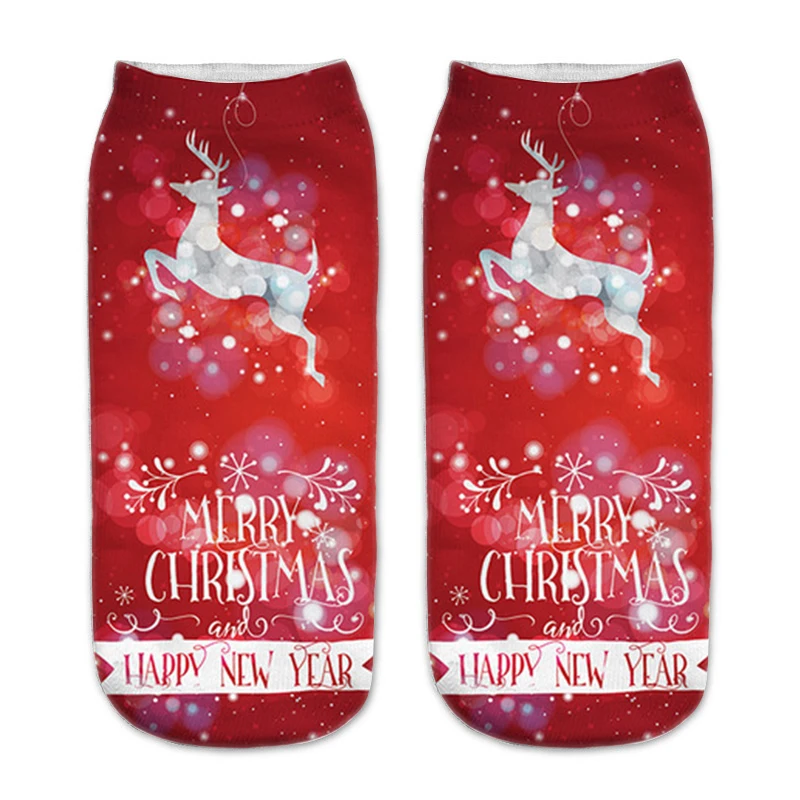 Рождественские носки, новинка 2018, женские Веселые носки с 3D принтом, забавные мультяшные олени, снеговики, Санта, носки с низким вырезом, унисекс, подарок для любителей Косплея