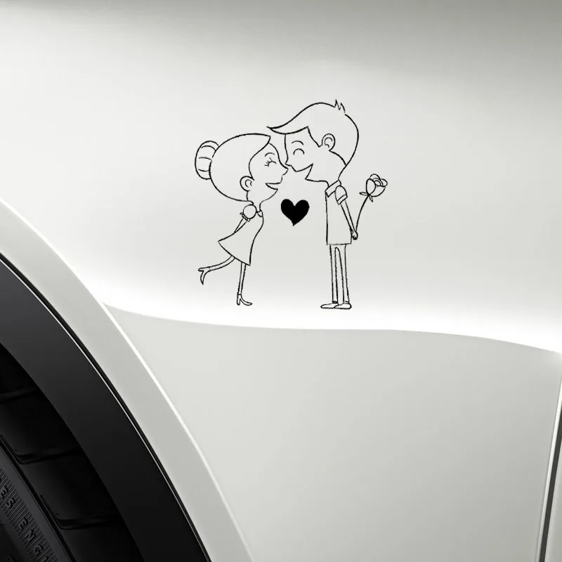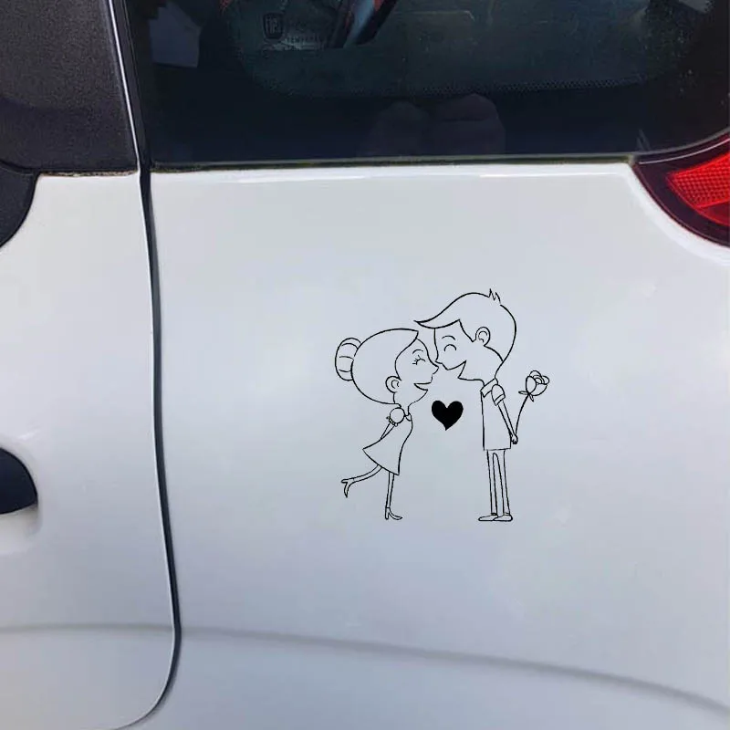 YJZT, 13,6 см * 14,9 см, мультяшная виниловая наклейка на автомобиль, наклейка с поцелуем, любовью, сердцем, чернаясеребряная цвет