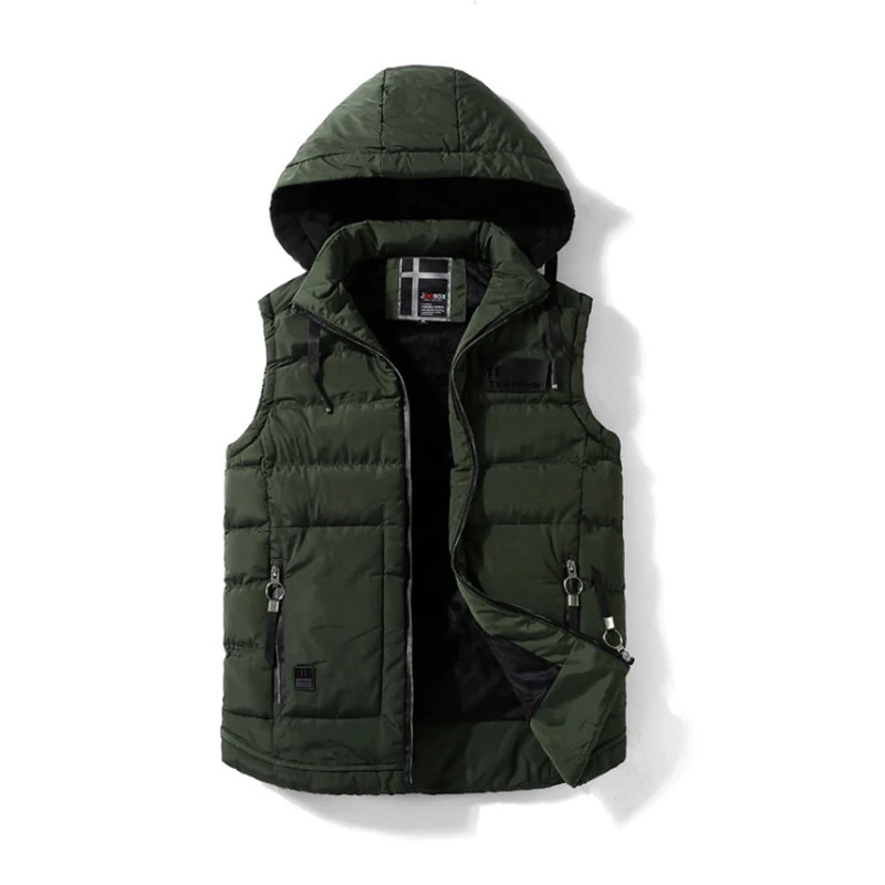 Мужской утепленный жилет с капюшоном, Повседневный хлопковый жилет цвета хаки без рукавов, на молнии, Осень-зима 2022