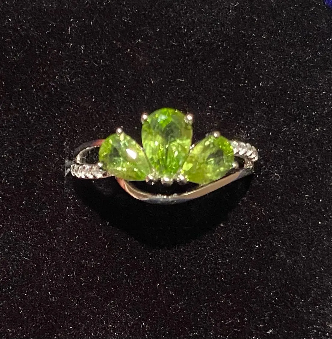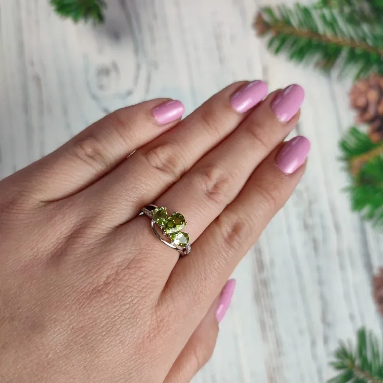 Женское кольцо из серебра пробы, с натуральным зеленым перидотом