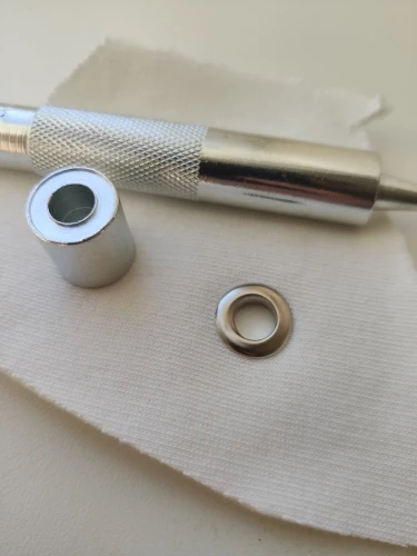 В наборе нет инструмента для пробития дырки, имейте ввиду. Придется ножом или ножницами. Сам люверс сел отлично.