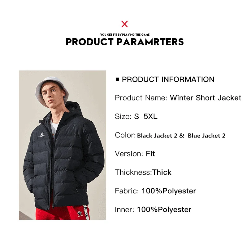Мужская хлопковая куртка KELME, парная теплая куртка с капюшоном, тренировочная спортивная форма, пальто с хлопковой подкладкой 3881405