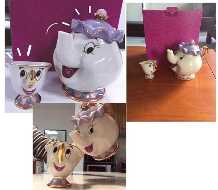 Прямая доставка с Красота и с рисунком из мультфильма Красавица и Чудовище Чай горшок Миссис Потс; Чип Чай горшок набор чашек для часы когсворт Творческий Рождественский подарок