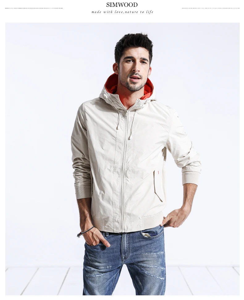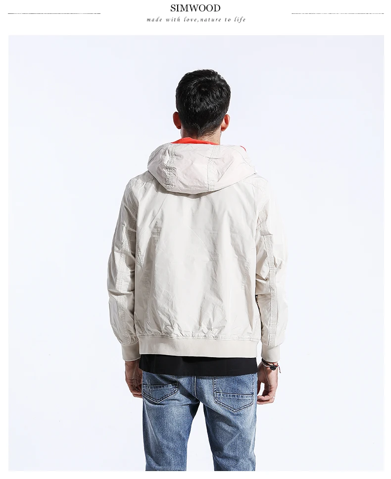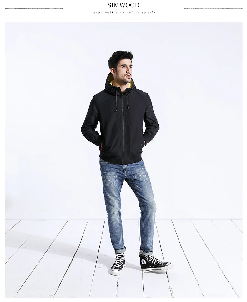 Демисезонная мужская ветровка SIMWOOD, легкая куртка черного цвета, облегающий жакет батальных размеров, 2019, повседневная верх