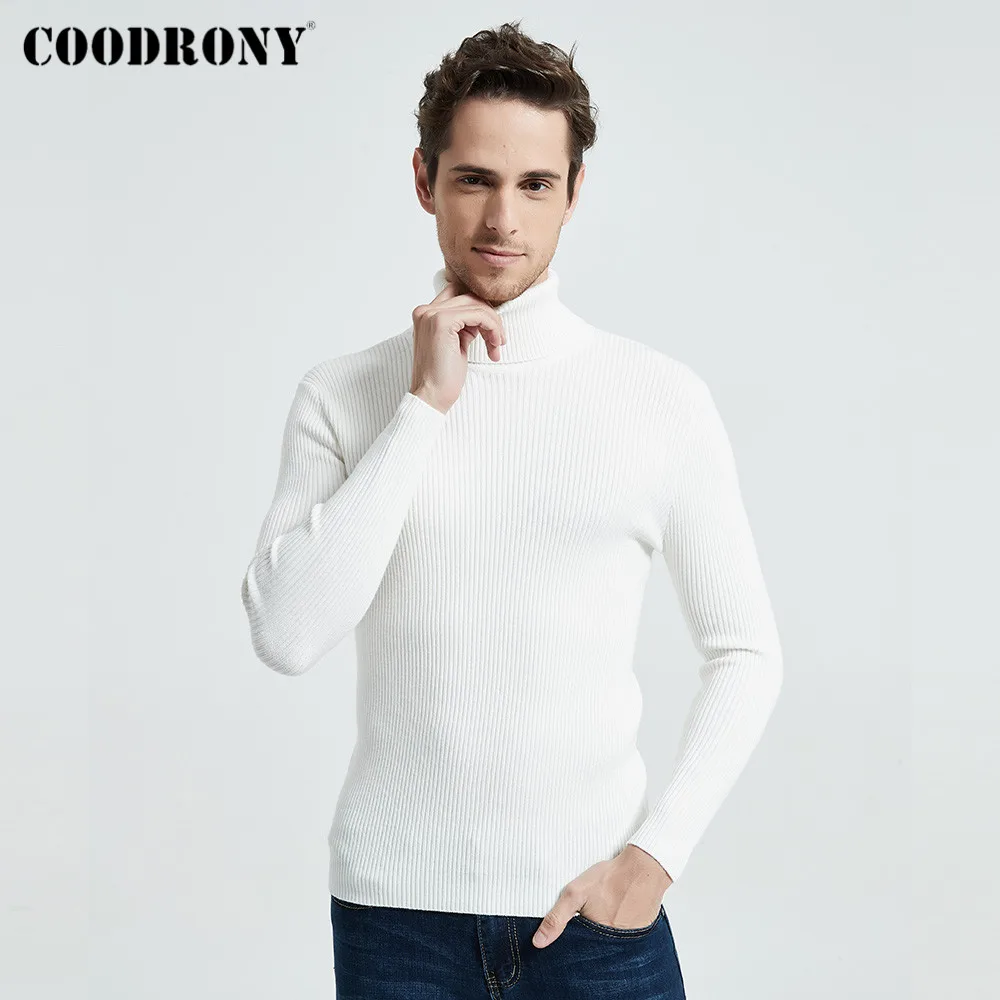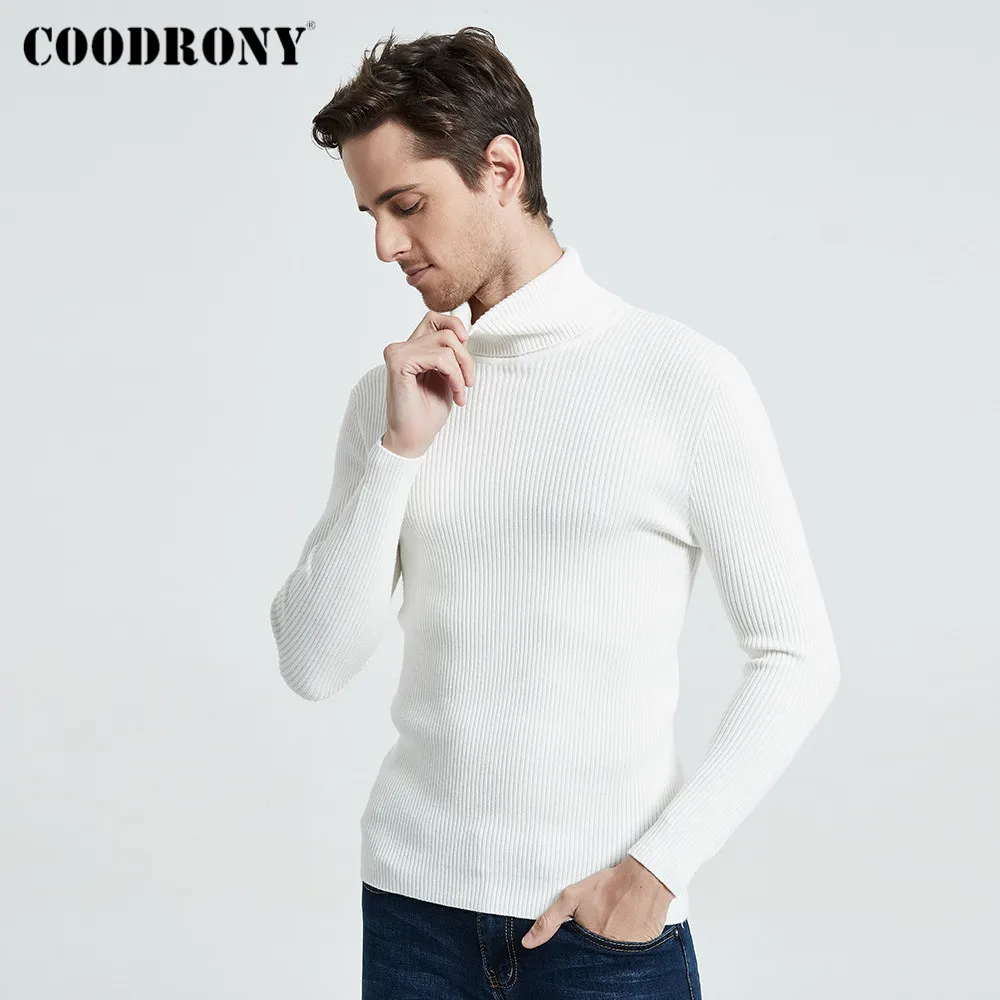Рождественский свитер COODRONY, Мужская одежда, зима 2021, плотный теплый повседневный трикотажный пуловер с высоким воротником, классический однотонный джемпер, 8253