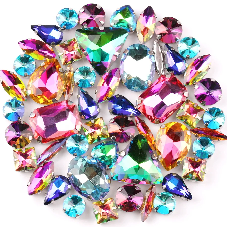 Кристалл AB цвета формы сочетаются с серебряным когтемМатериал: стекло
