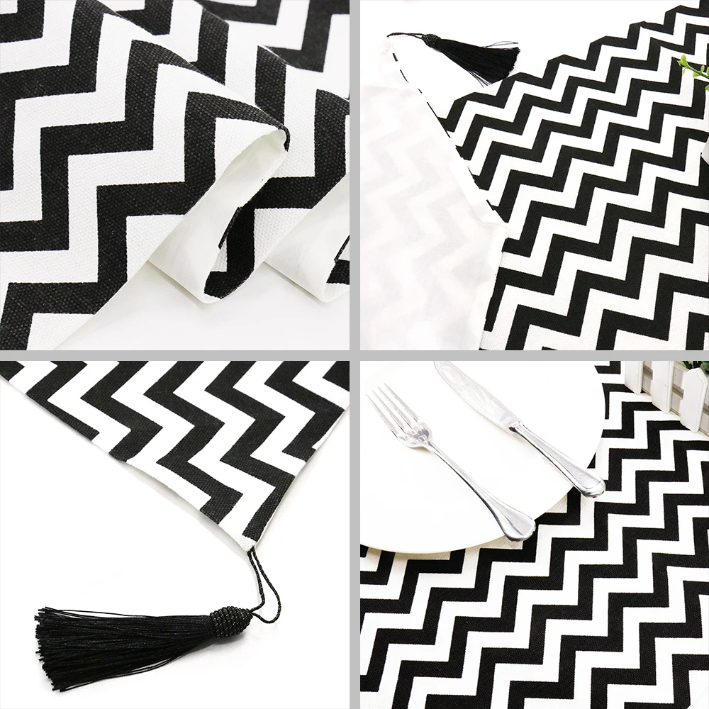 Настольная дорожка в черно-белую полоску с кисточками, романтическое свадебное украшение, настольное украшение, домашнее украшение сделай сам, текстиль в европейском стиле