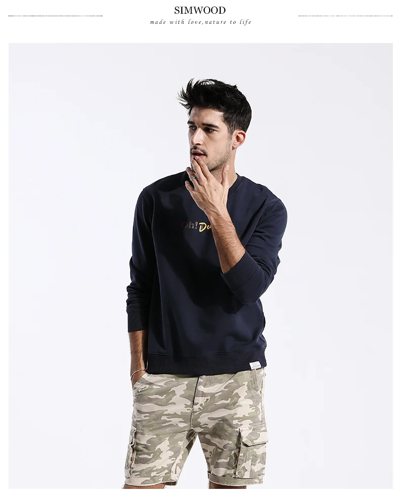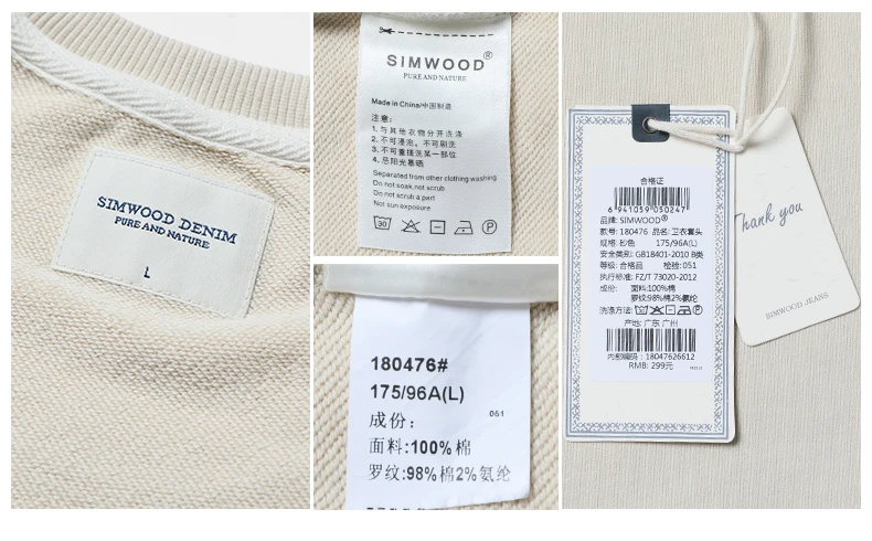 Мужское худи из 100% хлопка SIMWOOD, свитшот большого размера, брендовая одежда высокого качества, новая модель 180476 на осень, 2019