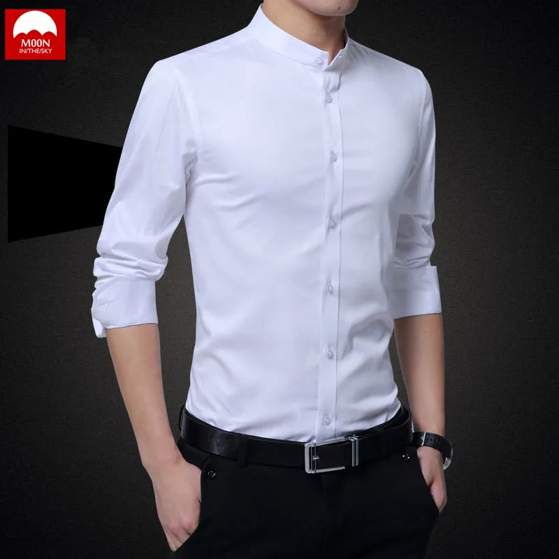 Мужская рубашка с воротником-стойкой MOON, деловая хлопковая приталенная рубашка с длинным рукавом и воротником-стойкой, CS-004, 2019