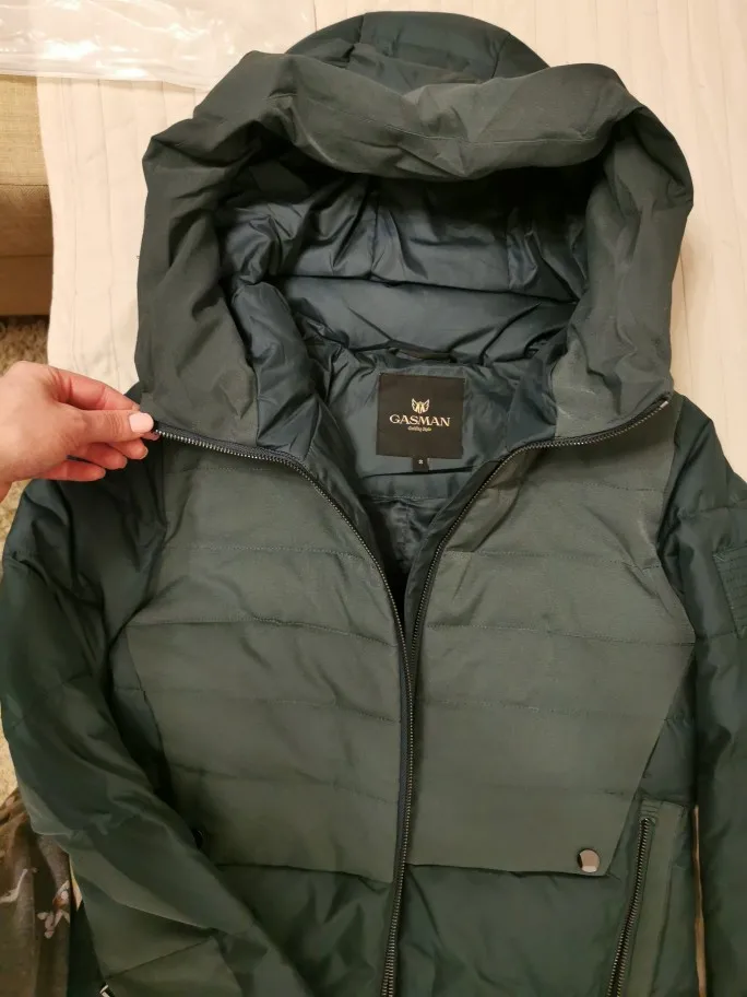 Фабричное качество, все швы ровные, фурнитура металлик, на рост 156 до колена,даже чуть ниже, на размер 40-42,s-ка подошла нормально, но немного свободно, свитер тёплый можно точно пододеть. Сам пуховик не зимний, на демисезон будет норм, для Питерской зимы подойдёт, кто живёт на севере-нет, будет холодно в нем. Покупала 11.11 примерно за 2300