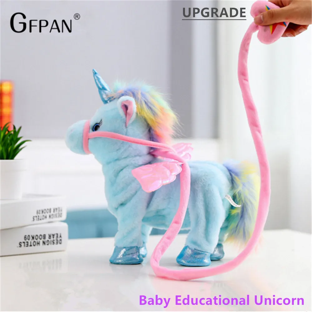 Забавные игрушки электрическая ходячая плюшевая игрушка единорог набивное животное лошадь Музыкальная кукла для детей рождественские подарки