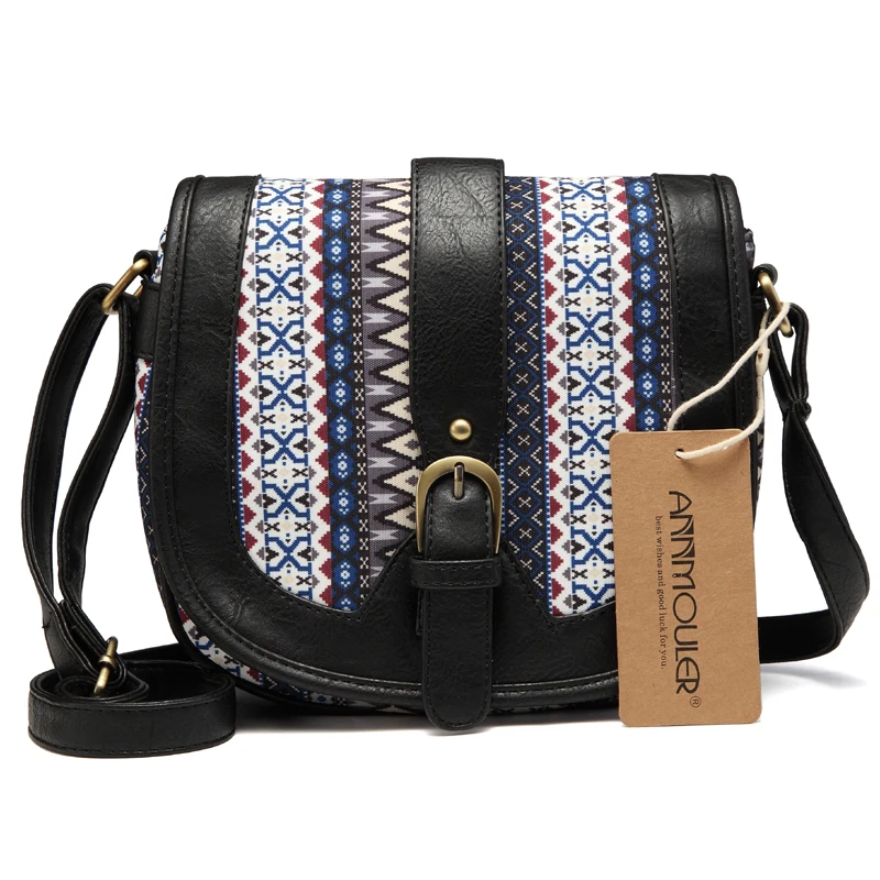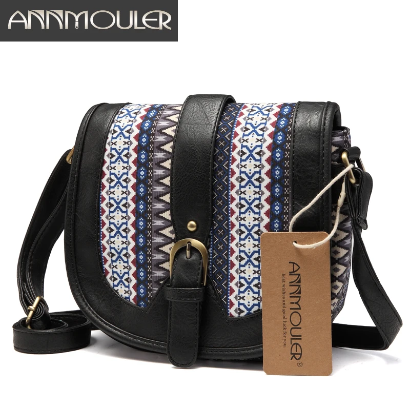 Сумка на плечо Annmouler женская из экокожи, лоскутный саквояж кросс-боди в богемном стиле, маленький чемоданчик