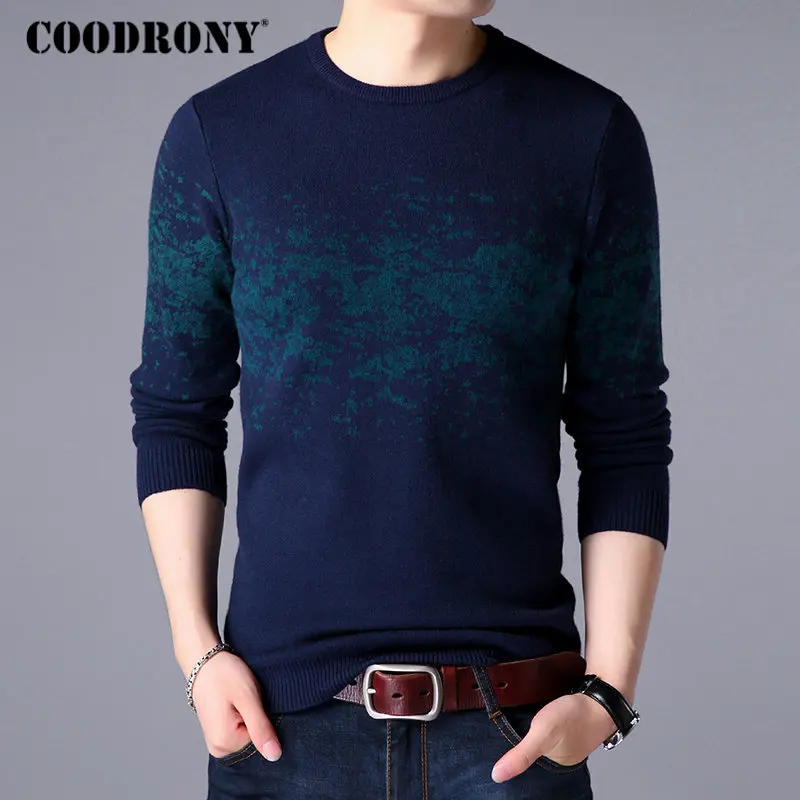 Мужской кашемировый свитер COODRONY, Повседневный пуловер с круглым вырезом, теплая одежда, осень-зима 2020, 8257