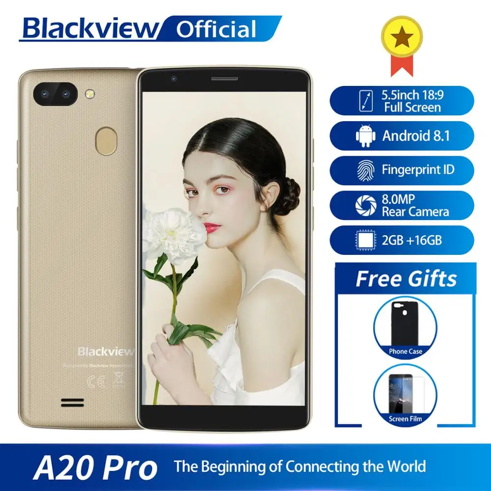 Blackview A20 Pro смартфон 2 ГБ + 16 ГБ MT6739WAL 4 ядра Android 8,1 5,5 дюйма 18:9 полный Экран отпечатков пальцев 4 г мобильного телефона