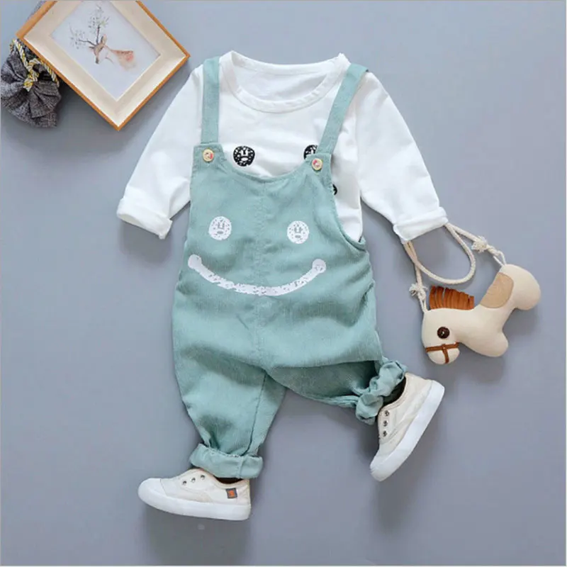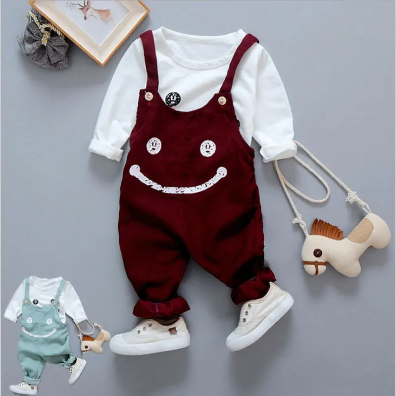 Осенняя одежда для маленьких девочек топы, футболки + комбинезон комплекты одежды для новорожденных, одежда для первого дня рождения, комплекты одежды для маленьких девочек