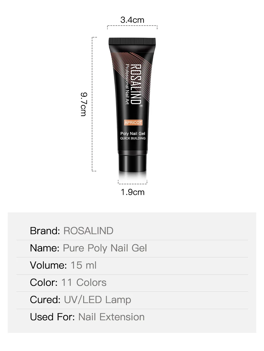 ROSALIND 15 мл гель для наращивания ногтей, Кристальный полимерный гель для ногтей, полуперманентный УФ-гель для дизайна ногтей, гибридный гвоздь Гель-лак