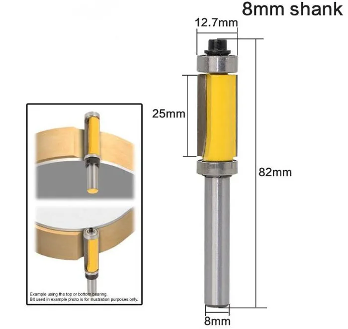 Фрезы деревообрабатывающие, 8 мм, 1 шт., верхний и нижний подшипник, 8 дюймов, хвостовик, деревообрабатывающий инструмент