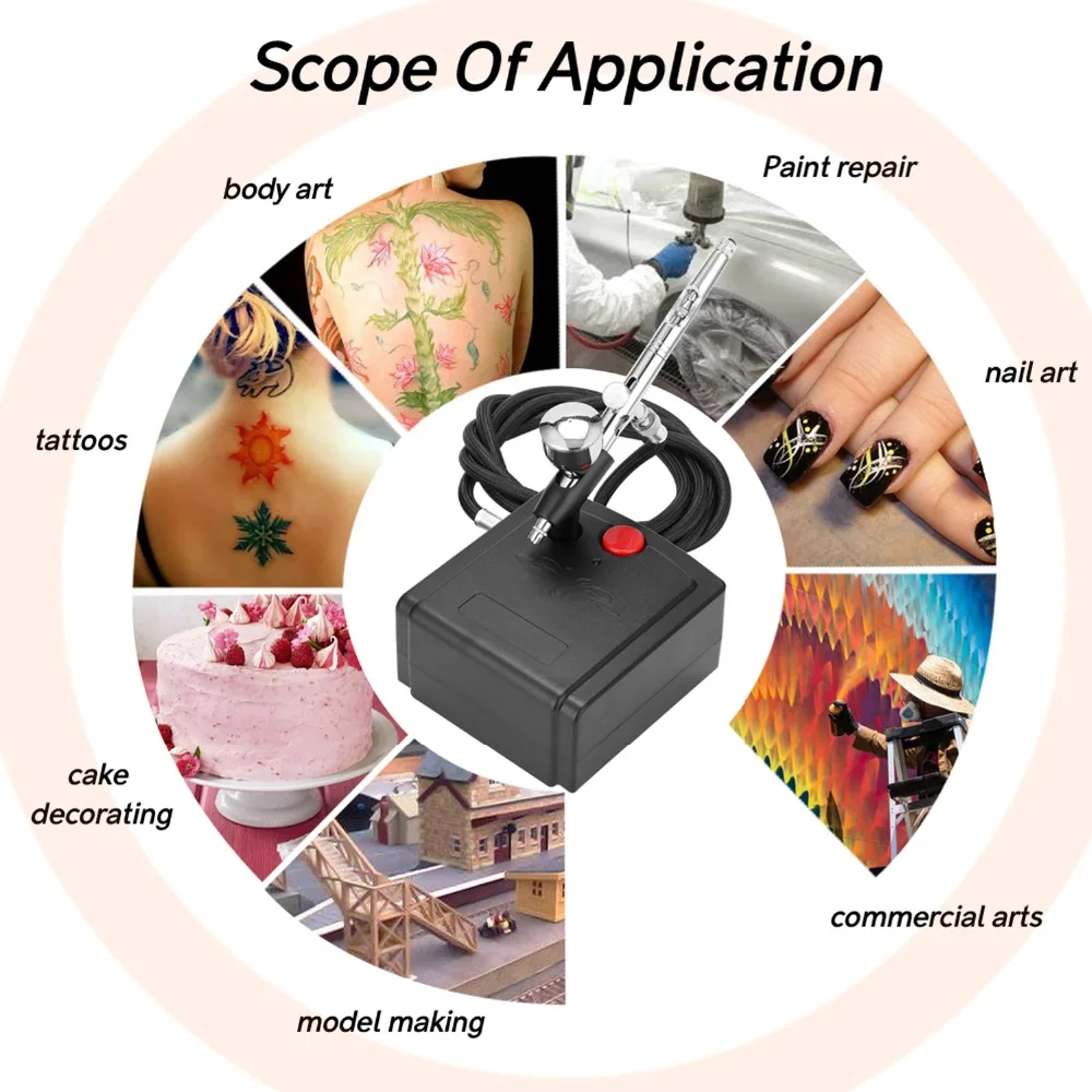 Этот профессиональный набор аэрографов широко используется для изготовления моделей, украшения тортов, татуировок, нейл-арта и т. д. Поставляется с одним воздушным компрессором, одним адаптером питания, одним аэрографом, одним держателем аэрографа, иглой 0,2 мм (установлена), иглой 0,3 мм, иглой 0,5 мм, одним соплом 0,3 мм, одним соплом 0,5 мм, один быстрый адаптер G1/8, один гаечный ключ, Один шланг, один инструмент золотистый распылитель иглы, один сепаратор масла и воды и одна капельница. Идеально подходит для художественных работ, коммерческого искусства, боди-арта, дизайнерской живописи, модельной живописи, ретуши фотографий, хобби и поделок, моделей и изобразительного искусства, таких как иллюстрация автомобильной живописи, роспись текстиля и футболок.Особенности:Мини-воздушный компрессор, стабильная производительность с диапазоном давления 0,25 фунта на кв. дюйм, идеально подходит для окраски распылением.Барометрическое давление на выходе 0-25 фунтов на кв. дюйм, барометрическое давление на выходе с разным выходом, подходит для различных случаев применения.Для макияжа: вы можете использовать его для спрея тональной жидкости, безупречно вписывается в вашу кожу.Средство по уходу за кожей: Сверхтонкий туман способствует впитыванию средства по уходу за кожей, улучшает состояние кожи.Триггер двойного действия с воздушной краской, прост в обращении и легко открывается для быстрой загрузки одной рукой.ТРИГГЕРНАЯ система безопасности, которая позволяет пользователям определять количество воздуха и высвобождаемой жидкости.Аэрограф для изготовления моделей, украшения тортов, авторемонта, нанесения контуров камуфляжа, нейл-арта и т. д.Сменные иглы и насадки 0,2 мм, 0,3 мм, 0,5 мм, широкое распыление, триггер действия для легкого и точного распыления.С широким распылителем от линии роста волос до 100 мм, размеры чашек: 7 куб. См.Экономия намного больше времени, чем Рисование вручную.Оснащен одним резиновым колпачком из ПВХ, сохраняет краску, попрощайтесь с брызгами.Сепаратор масла и воды для отделения влаги в воздухе, очищает воздух для лучшего окрашивания.Спрей и цветная среда:Акварели, акрил, чернила и красители, автомобильные уретаны, лаки и эмали.Применение:Иллюстрация, изобразительное коммерческое искусство, ретушь фотографий, пользовательская автомобильная, графика мотоцикла, Нейл-арт, косметика, миниатюры, модели, поделки, Украшение ТортовХарактеристики:Название: Набор аэрографов воздушного компрессораОсновной материал: медь + пластикБыстрый адаптер: адаптер G1/8Диаметр иглы: 0,2 мм (установлено), 0,5 мм, 0,3 ммСтакан для жидкости: 7 куб. СмВоздушный компрессор:Модель: T-100KНапряжение: 12 ВТок нулевой нагрузки: <1,0 АВыход воздуха в минуту: 10 л/минРабочее давление: 0-25PSIВоздушный компрессор: 115*118*59 мм/4,53*4,65 * 2.32inРазмер аэрографа: 162*68*27 мм/6,38*2,68 * 1.06inРазмер аэрографа: 196*108*36 мм/7,72*4,25 * дюймаВес изделия: 963 г/фунтаПосылка: 200*125*120 мм/7,87*4,93 * 4.72inВес посылка: 1046 г/фунтаУпаковочный лист:1 воздушный компрессор1 аэрограф1 * подставка1 * Адаптер питания2 иглы для аэрографа2 * насадки1 * G1/8 быстрый адаптер1 * гаечный ключШланг 1*1,8 м2 чистящие щетки1 * золотистый распылитель-игольчатый инструмент1 * сепаратор масла и воды1 * капельница