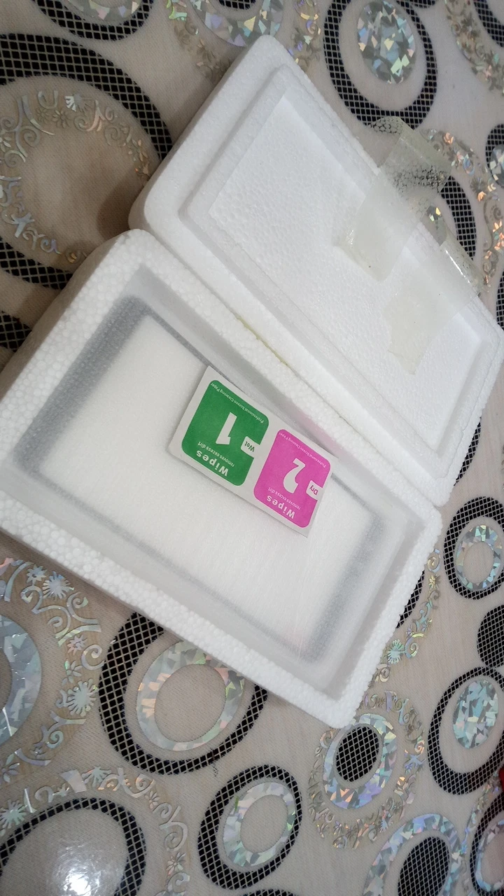 Упаковке был удивлен. Стекло находилось в коробочке из пенопласта. Все целое, без царапин. В комплекте пара салфеток. Доставили за месяц.