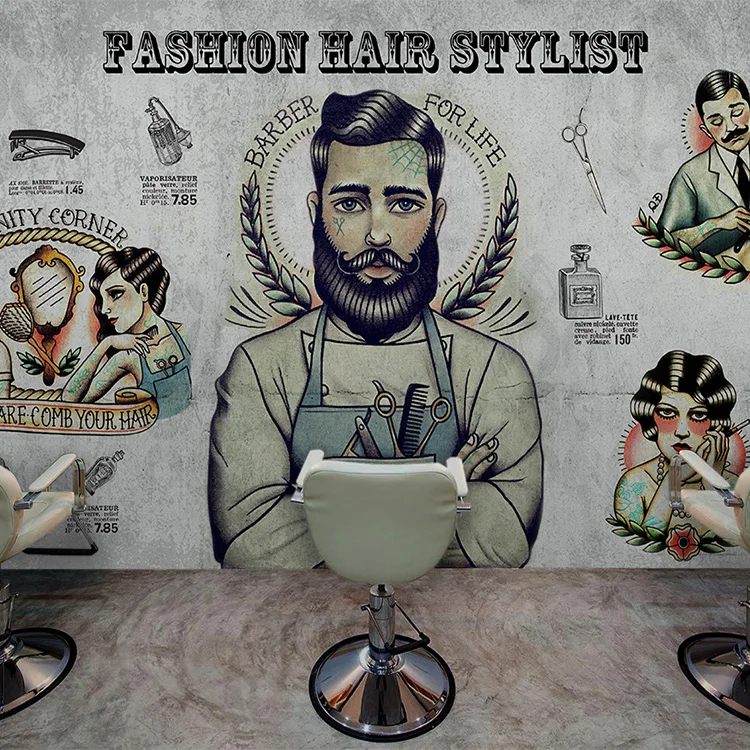 Ретро обои для парикмахерской, парикмахерской, парикмахерской
