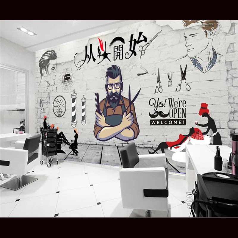На заказ белая кирпичная стена Красота Стиль Парикмахерская настенная бумага 3D Парикмахерская промышленный Декор Фон настенная бумага 3D