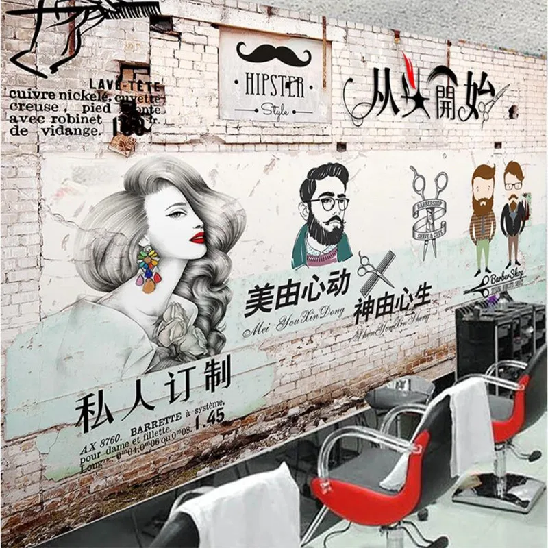Ручная роспись Парикмахерская дамское изображение 3D кирпичная стена бумага для парикмахерской Парикмахерская Салон красоты фон настенная бумага 3D
