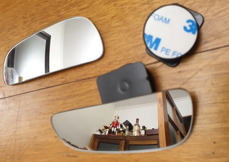 Товар получен в хорошем состоянии. Зеркало изогнуто, поэтому не может приклеиться непосредственно на боковое зеркало с плоской поверхностью.