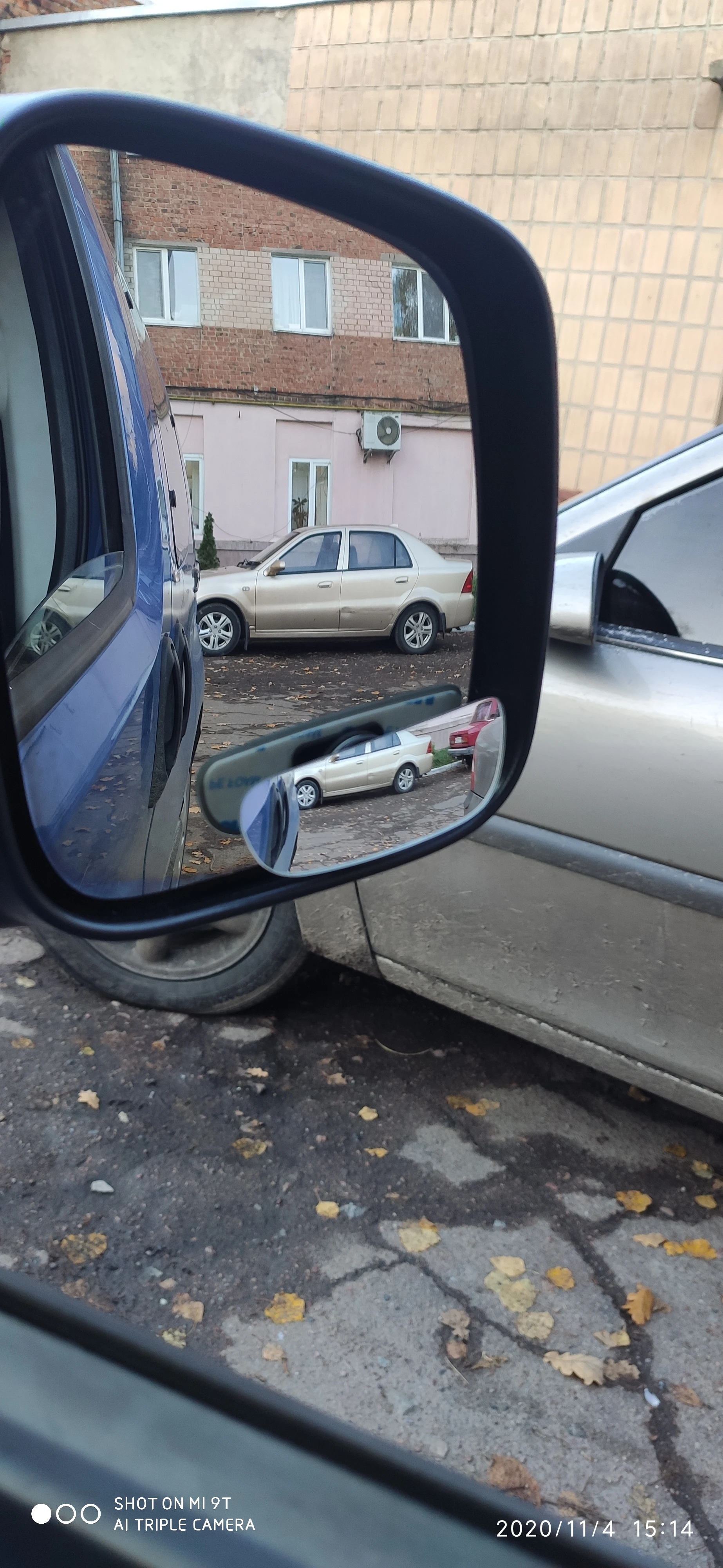одно зеккальце меньше другого, но это не страшно, как раз на ближнее зеркало
