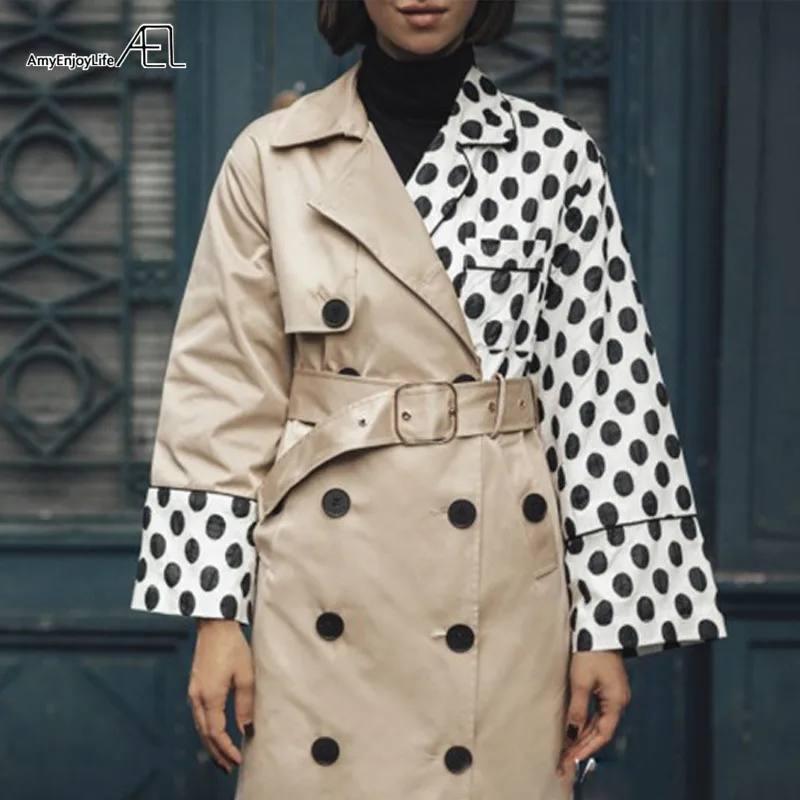 Длинный Тренч AEL женский в горошек, модное Свободное пальто в стиле пэчворк с поясом, верхняя одежда, осень-весна 2018