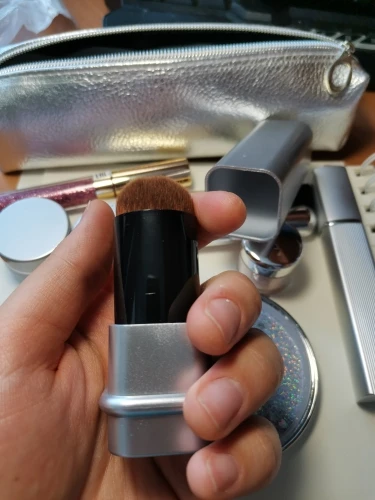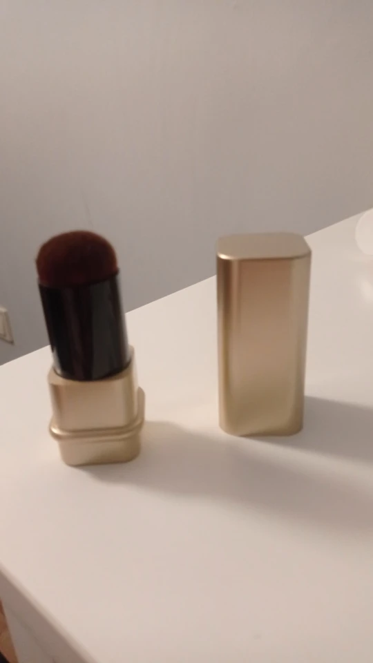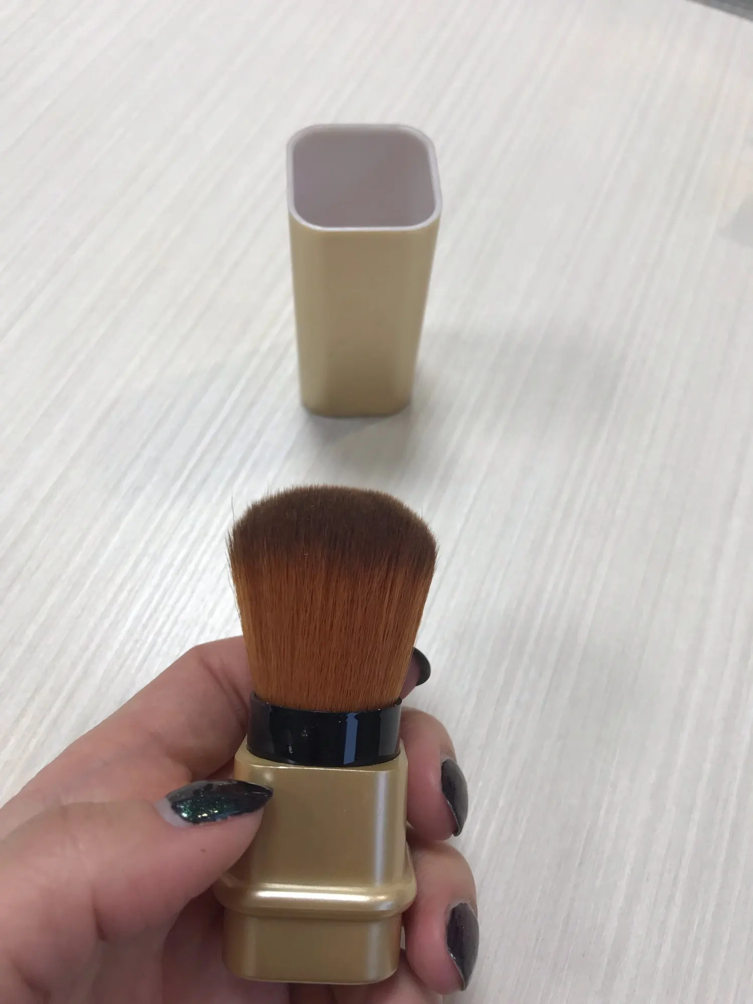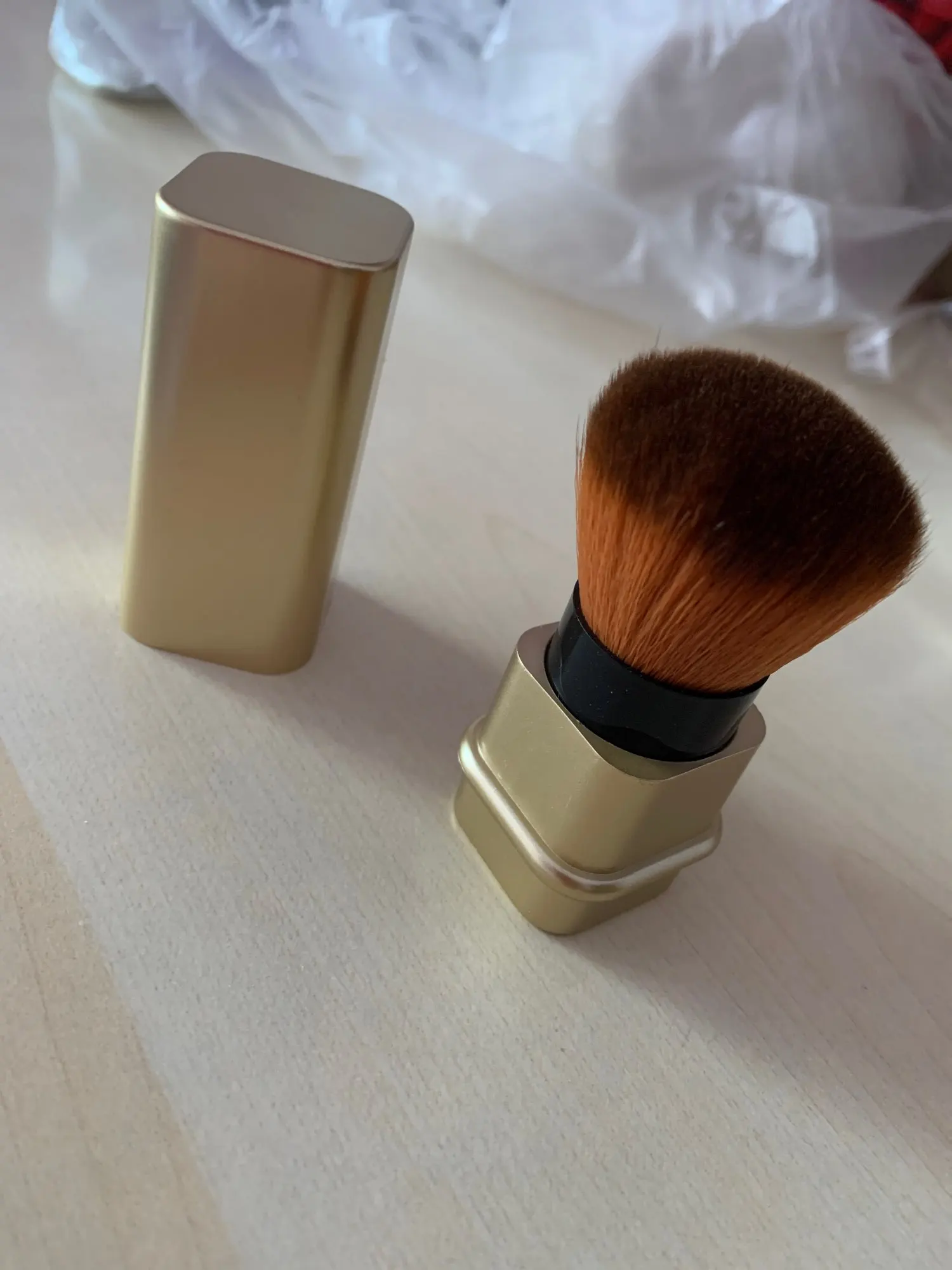 доставка чуть меньше месяца. размер больше ожидаемого для маленькой сумочки. кисть не выдвижная, просто цилиндр вокруг опускается и поднимается. сама кисть мягкая приятная.