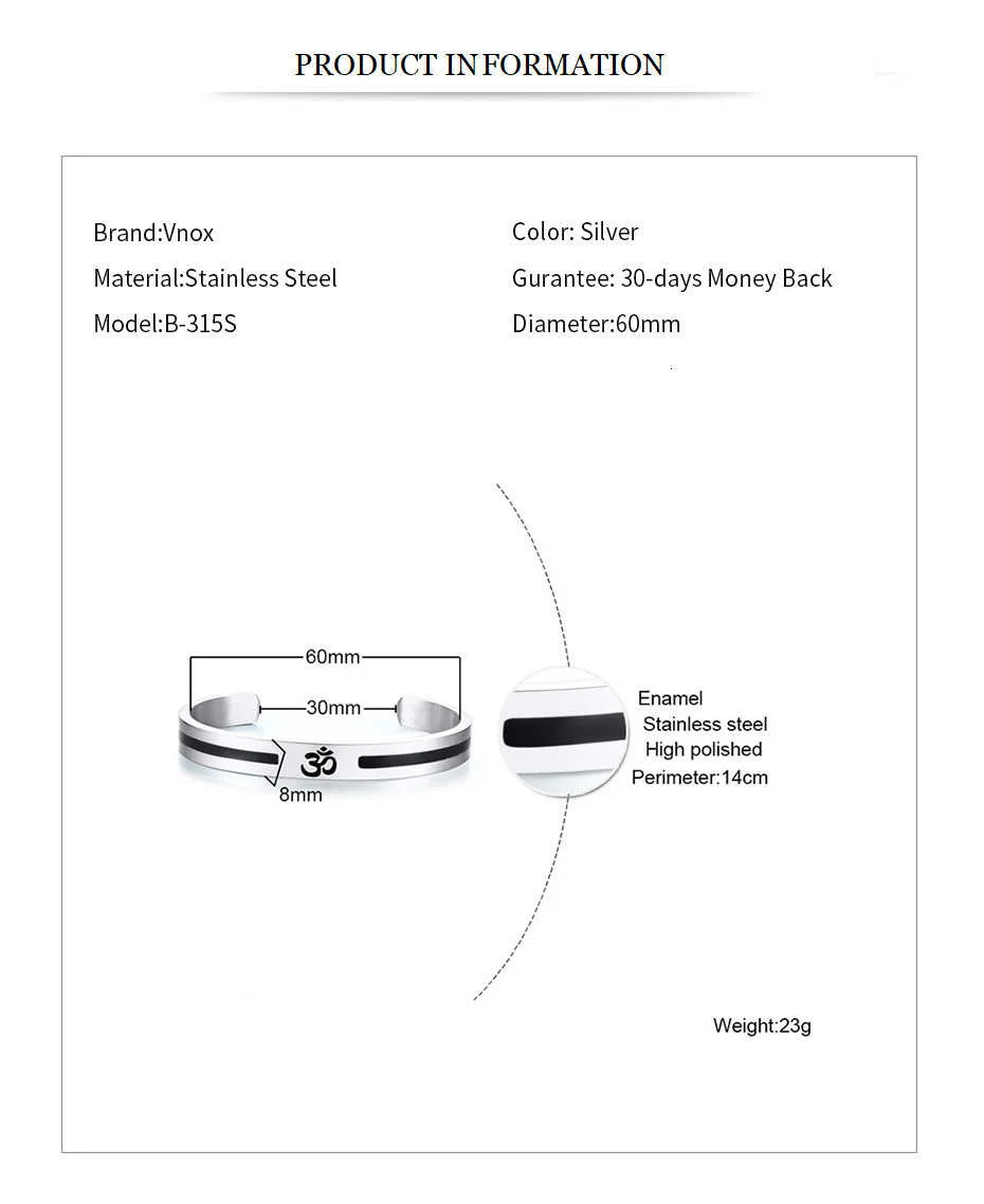 Vnox AUM OM браслет для мужчин и женщин из нержавеющей стали для йоги ювелирные изделия для медитации