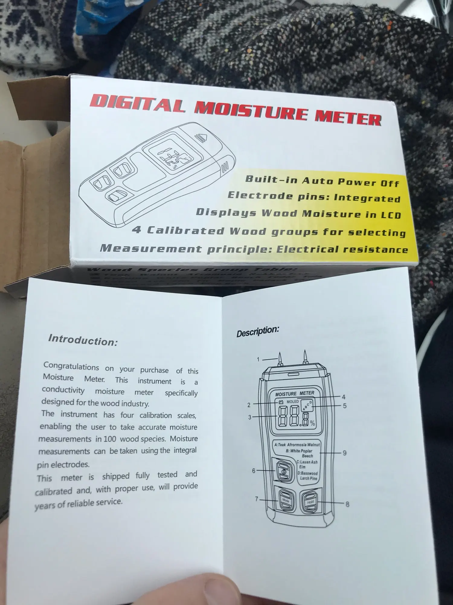 Супер быстрая доставка! Влажность измеряет. Мебельный щит из сосны, который давно лежит дома в сухости, при измерении выдал 10%. Продавца рекомендую.