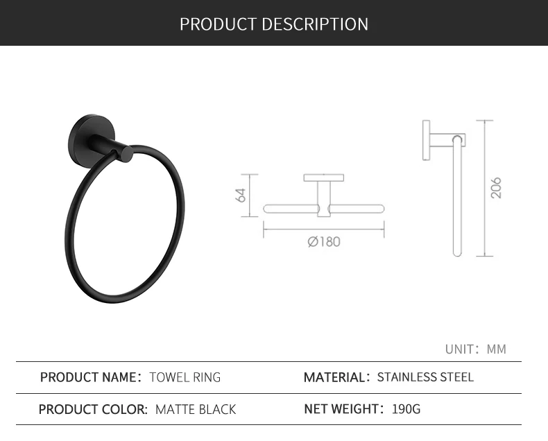 Вешалка для полотенец, из нержавеющей стали, черная, матовая