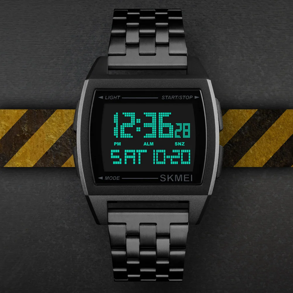 Часы наручные SKMEI Мужские Цифровые, прямоугольные водонепроницаемые спортивные с двойным отсчётом времени и будильником, стальные, 1368