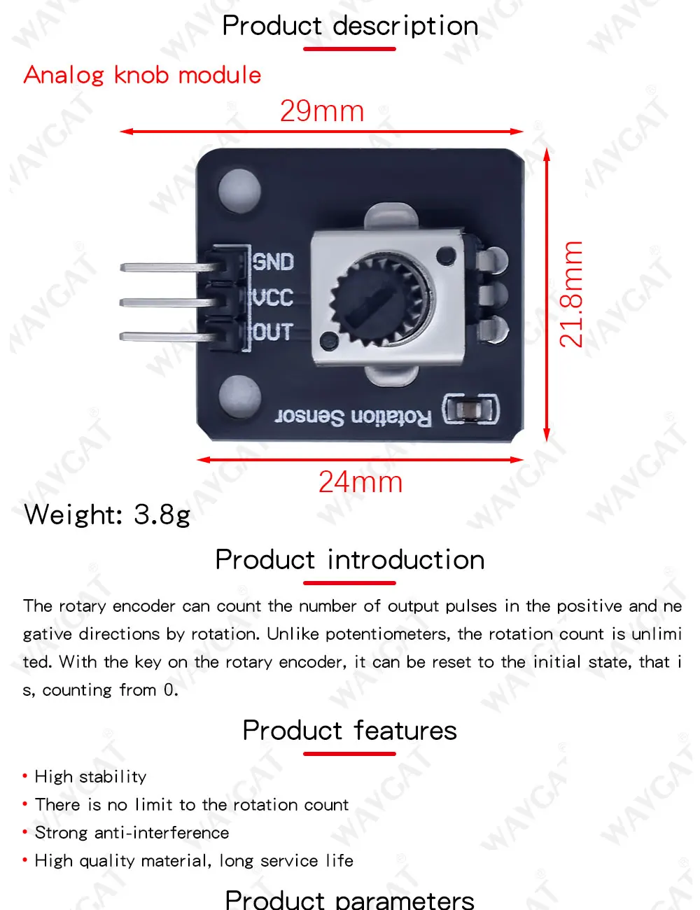 Модуль поворотного энкодера WAVGAT для разработки кирпичного датчика Arduino, круглая Вращающаяся ручка потенциометра EC11